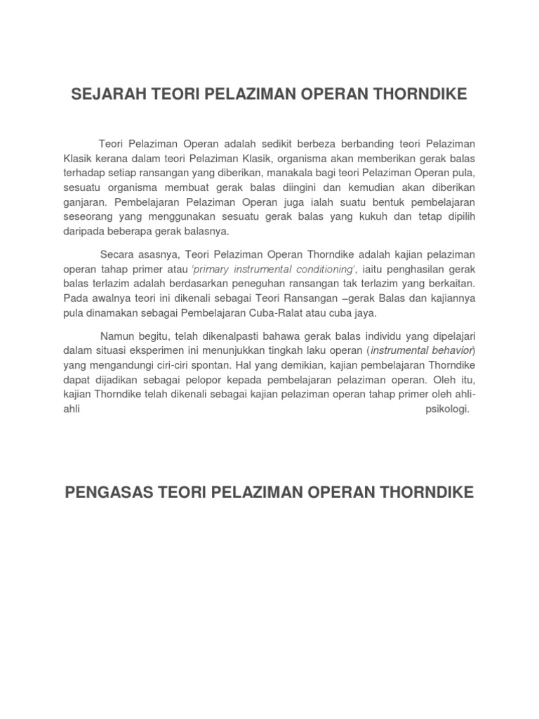 Teori skinner pelaziman operan 4875845 pembelajaran thorndike. Inti dari teori behaviorisme skinner adalah pengkondisian operan (kondisioning operan). Eksperimen ini menunjukkan bahawa satu gerak balas hanya akan berulang jika wujud ganjaran. Skinner (1938) dalam teori pelaziman operan skinner, modifikasi tingkah laku peneguhan. Operan skinner skinner membuat beberapa rumusan tentang pembelajaran manusia :